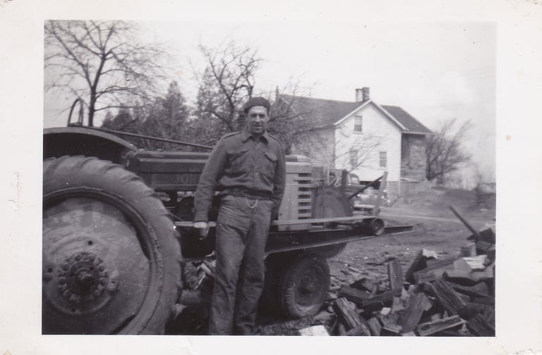 Dirk Rijksen in 1950, his first year in Canada. Is he wearing part of an old army uniform?