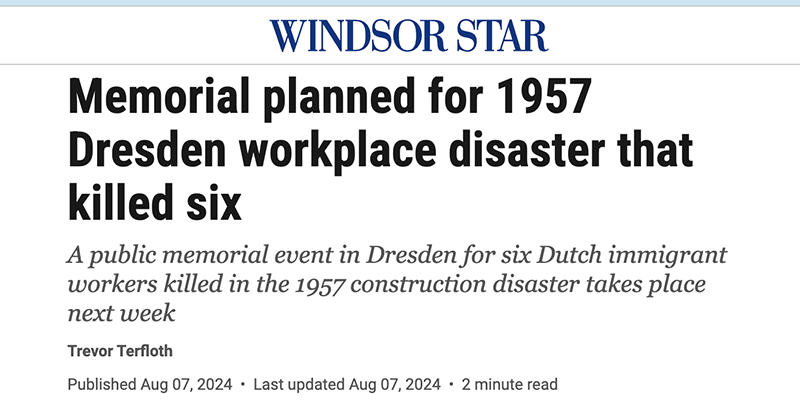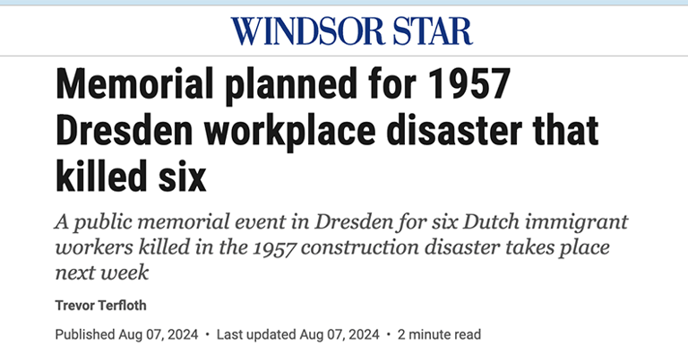 Aug. 15, 2024: Read the Chatham Daily News article about our memorial event, held in Dresden on the anniversy of the fatal cave-in